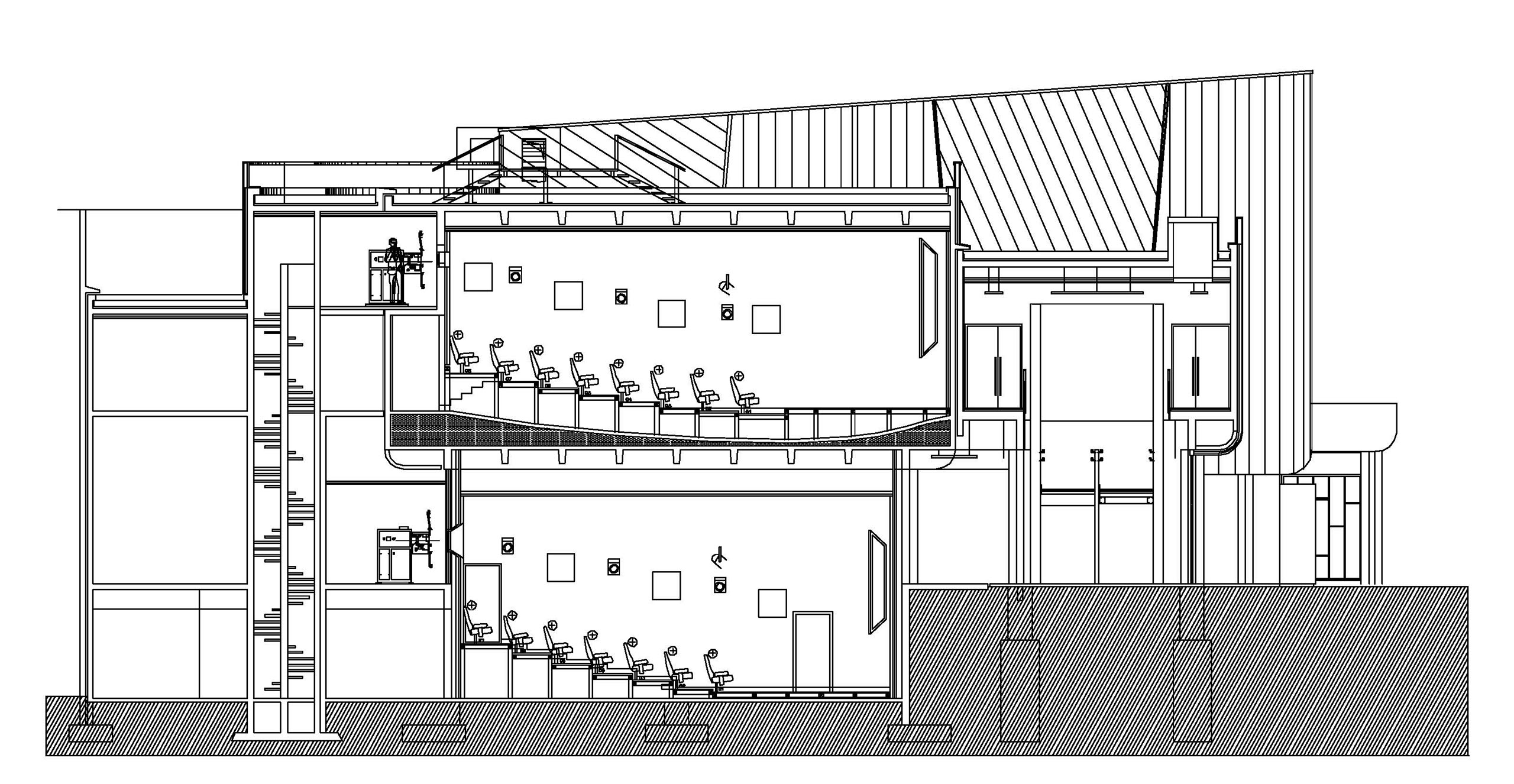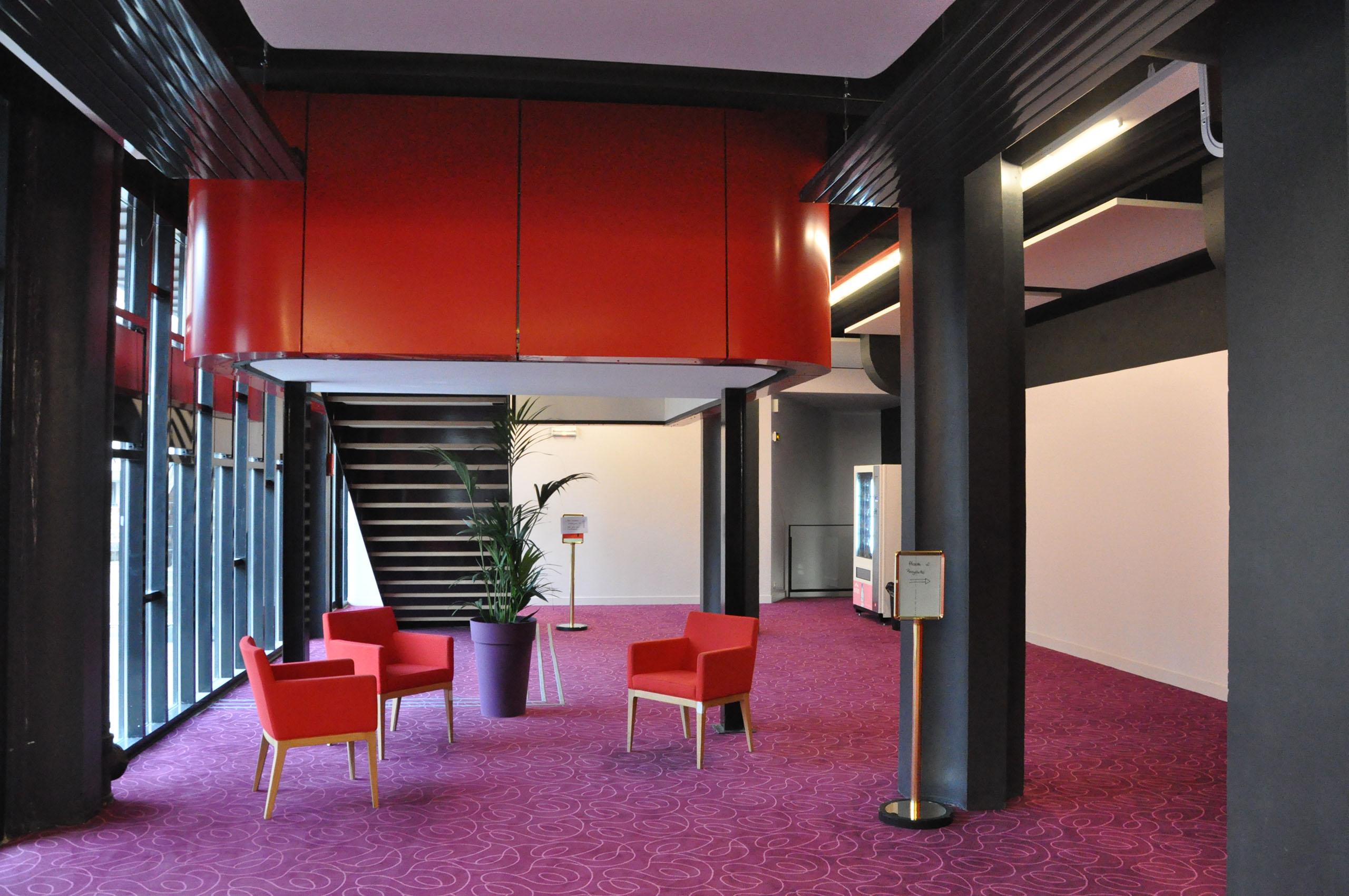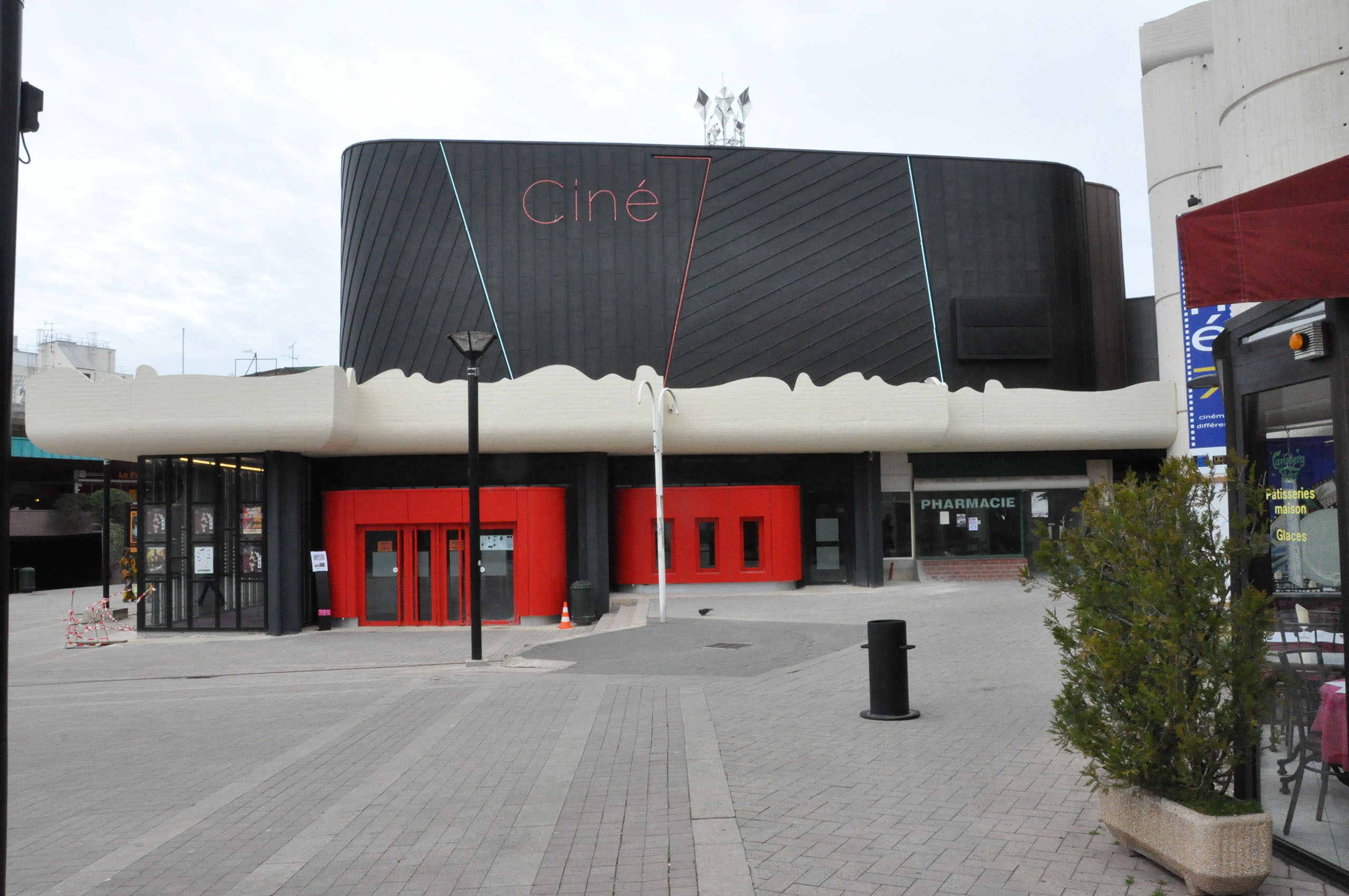 Restructuration lourde du cinéma de deux salles Ciné 7 à Élancourt et extension à l'intérieur de l'existant avec création d'une troisième salle partiellement creusée en sous-sol, aménagement d'un hall plus vaste, mise en accessibilité de l’ensemble du bâtiment, déplacement des sanitaires et réfection complète du système de chauffage et de ventilation.
