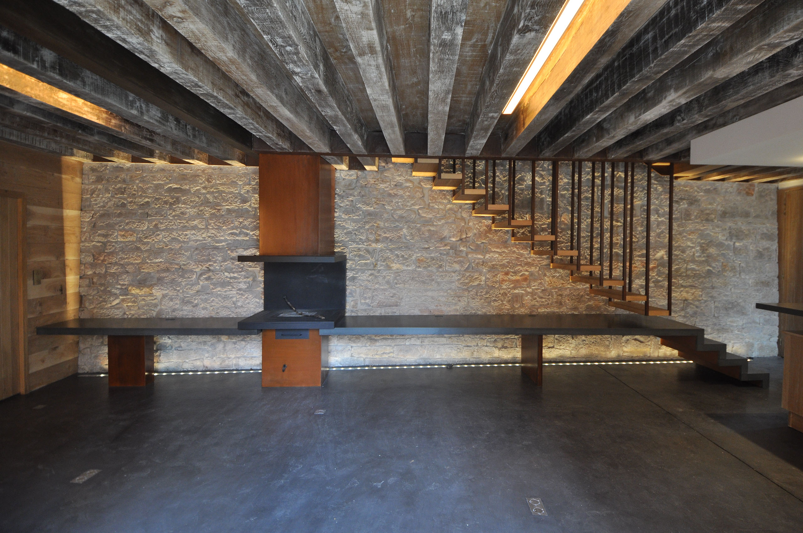 Restauration et réaménagement en habitation privée (y compris conception du mobilier intégré) de la maison XIXème, annexe du château de Gevrey-Chambertin (ISMH) adossée à l’ancien mur de rempart occidental.