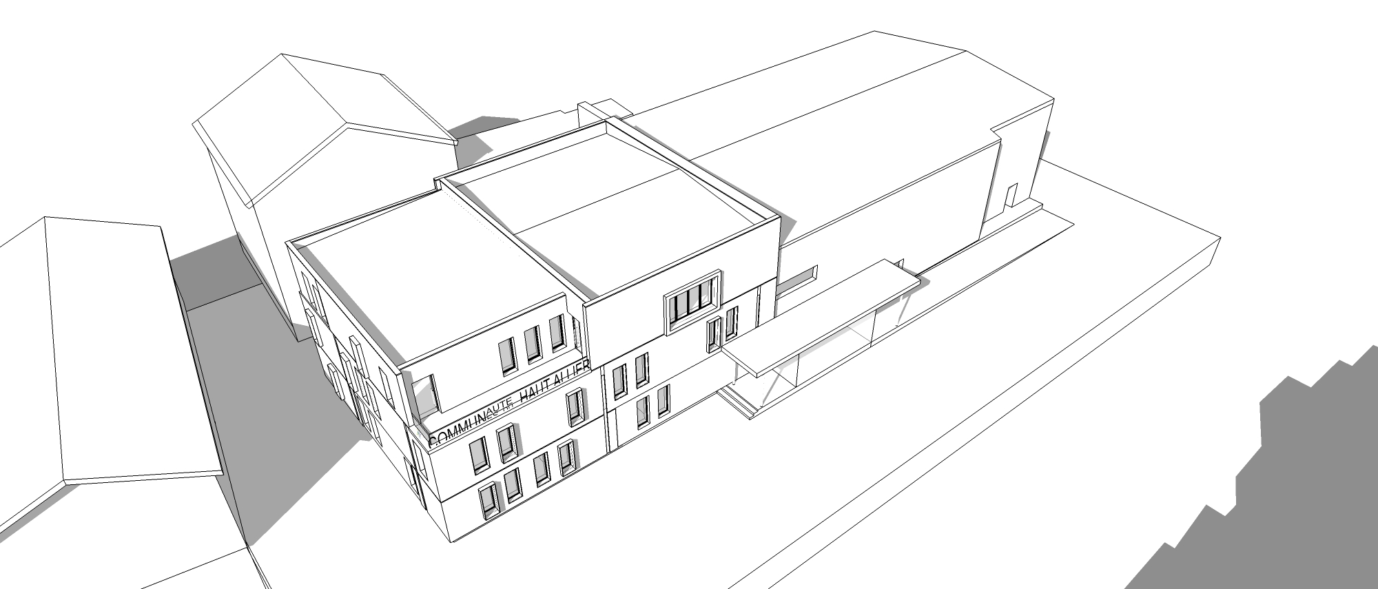 Création d’une maison des Services Publics pour la Communauté de Communes du Haut-Allier à Langogne, regroupant une salle du conseil de Communauté de Communes, des bureaux et tous les locaux annexes nécessaires à l’accueil du personnel et du public. Il s’agit de la seconde phase de la réhabilitation de ce bâtiment qui accueille aussi le Cinéma, lui-même réhabilité entre 2009 et 2011.