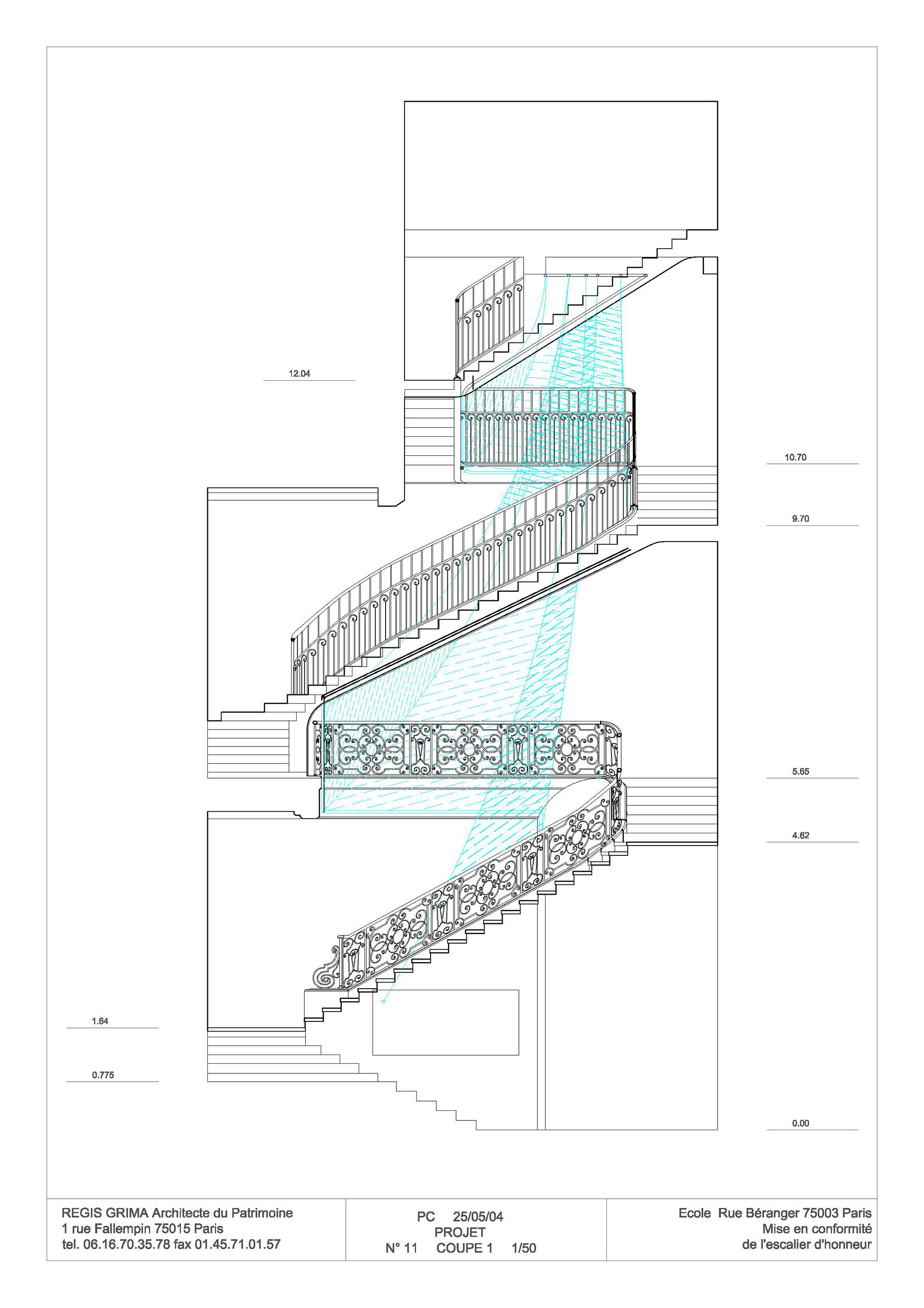 Afin d’améliorer la sécurité dans les escaliers dans les établissements scolaires, les normes de garde-corps d’escalier ont évolué pour obliger les collectivités locales à les rehausser à 1,40 m ; la ville de Paris a choisi d’abonder dans cette préoccupation de sécurité en imposant que les garde-corps soit rehaussés à 1,80 m.