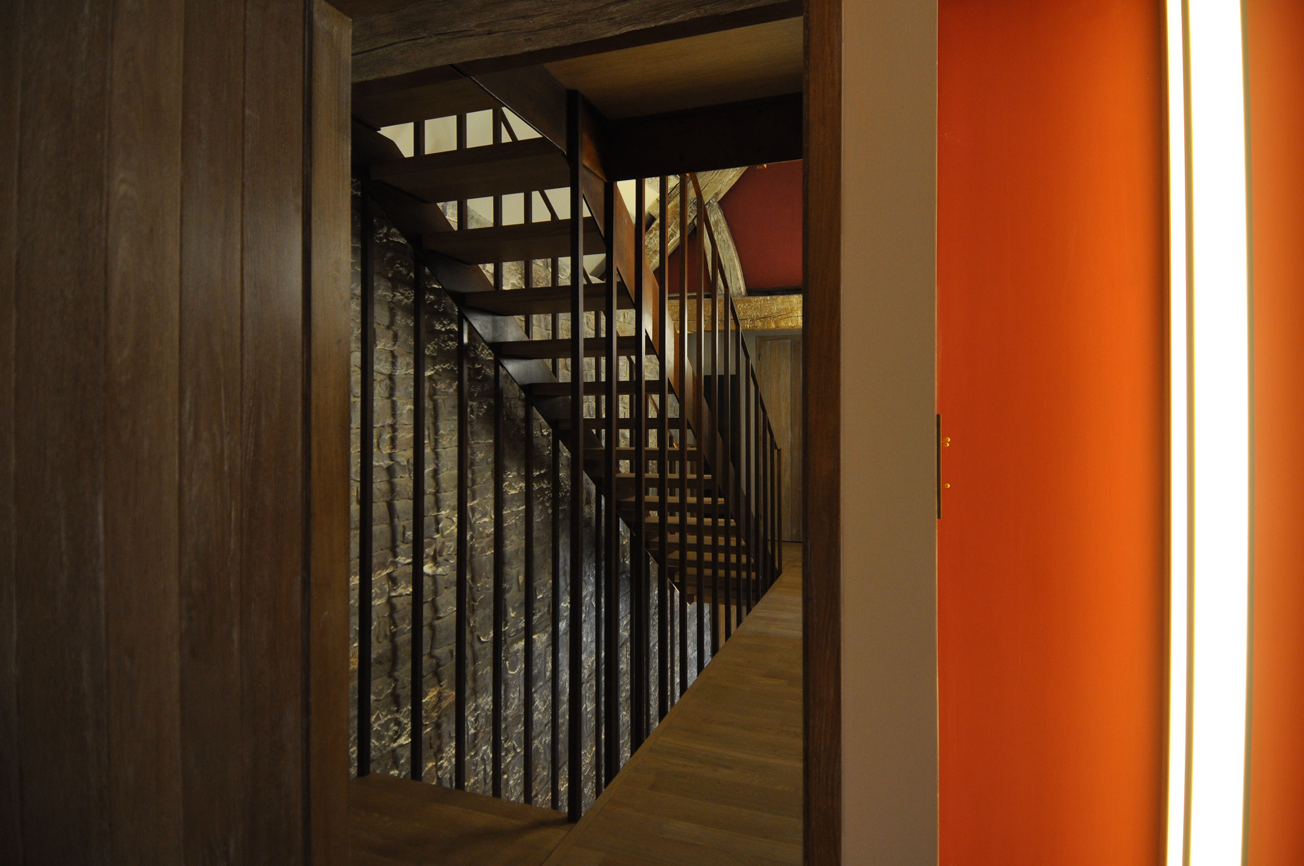 Restauration et réaménagement en habitation privée (y compris conception du mobilier intégré) de la maison XIXème, annexe du château de Gevrey-Chambertin (ISMH) adossée à l’ancien mur de rempart occidental.