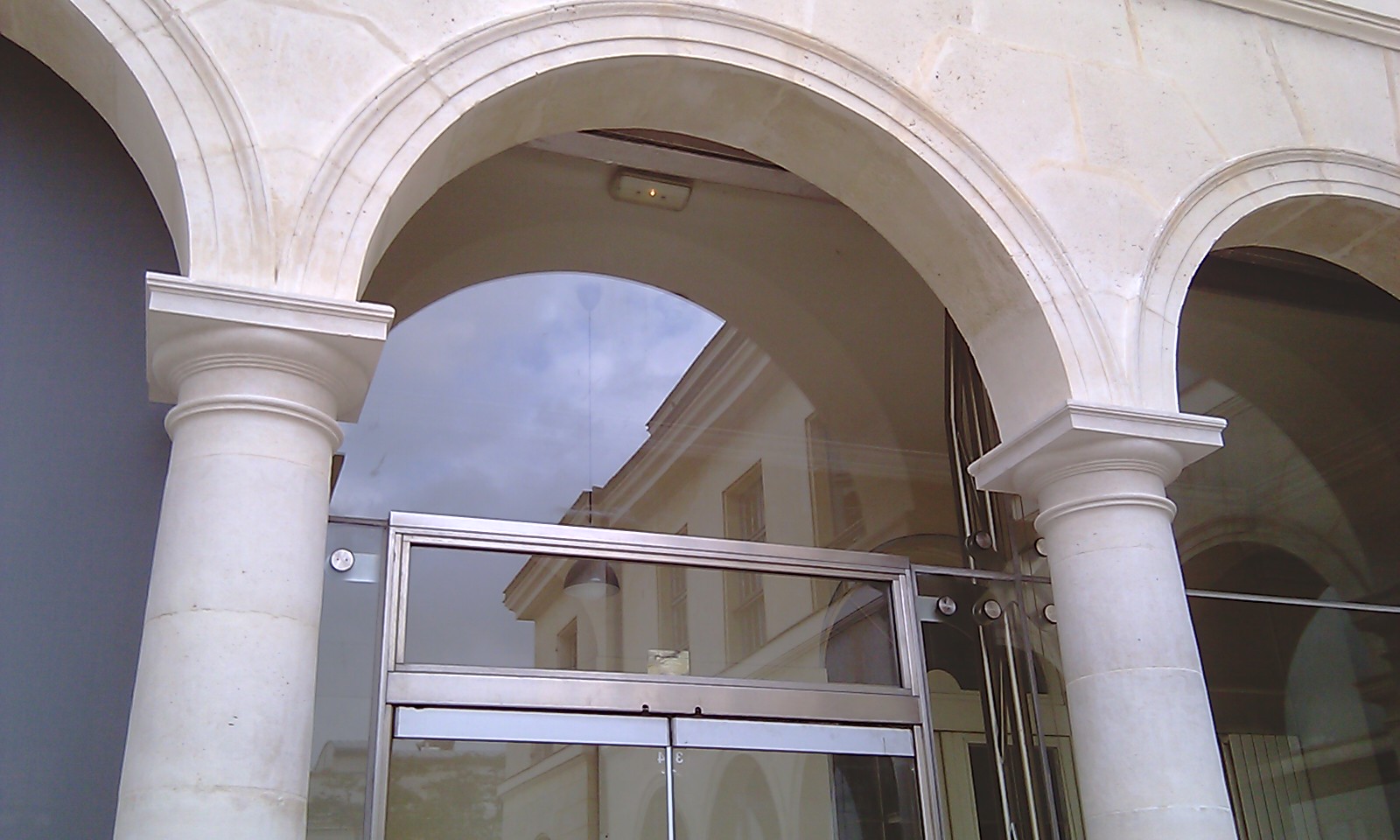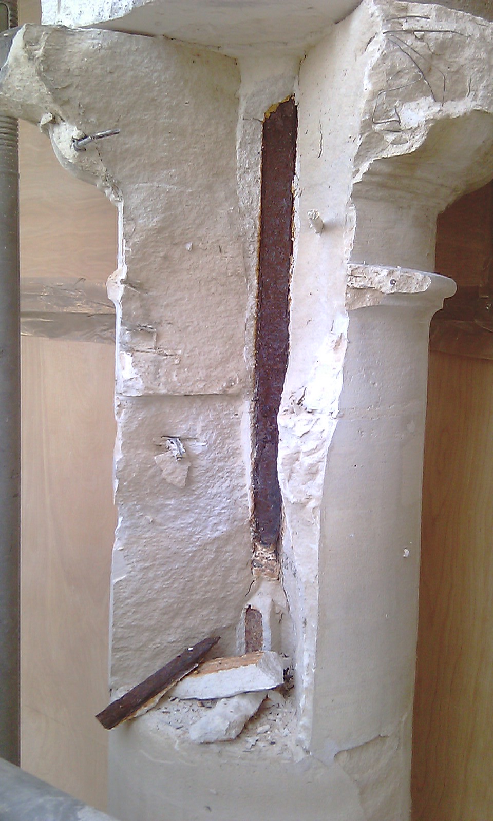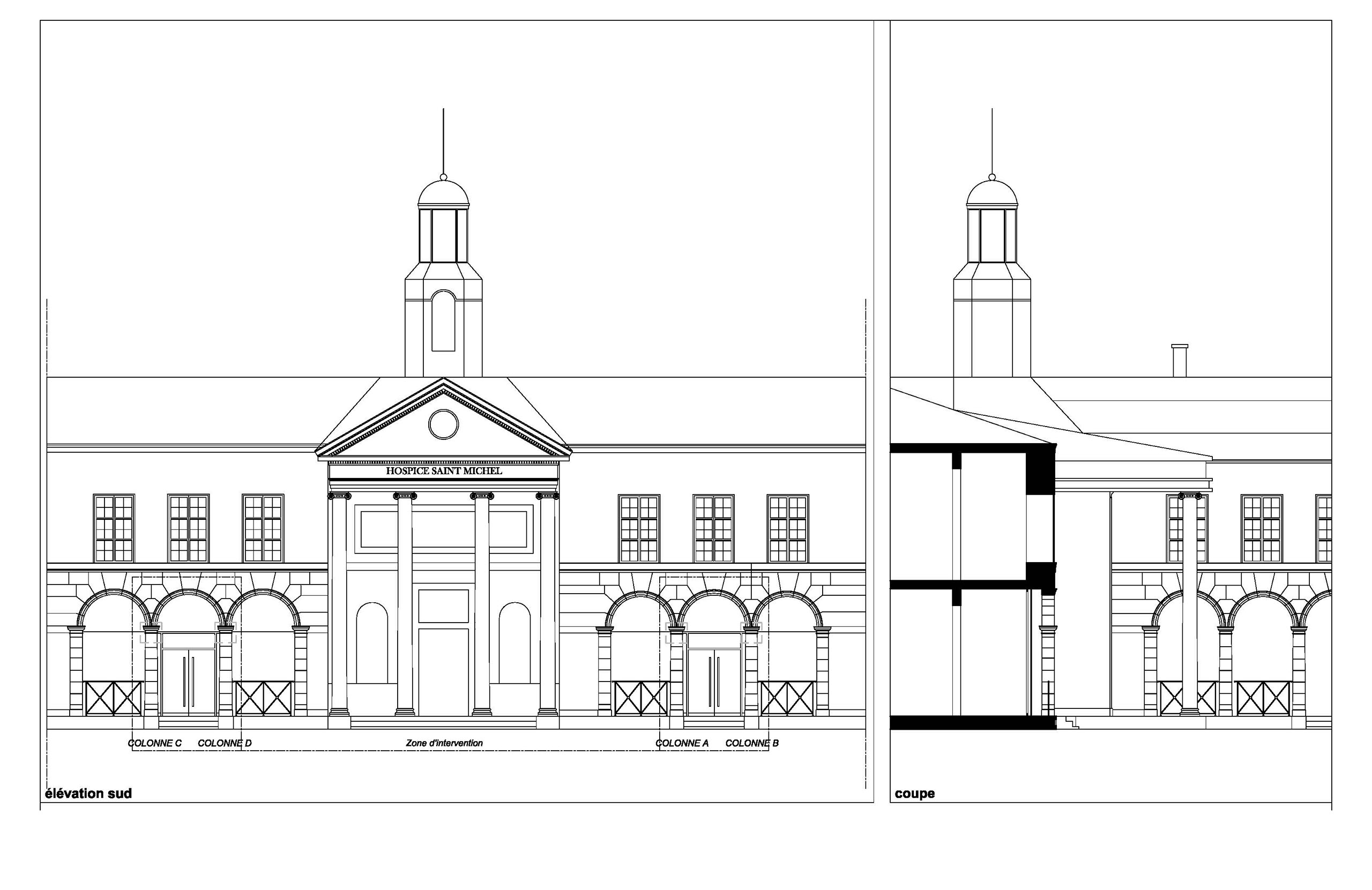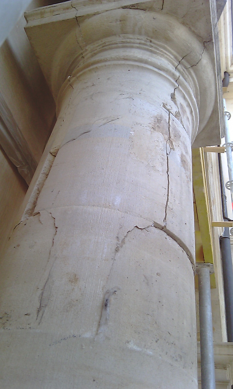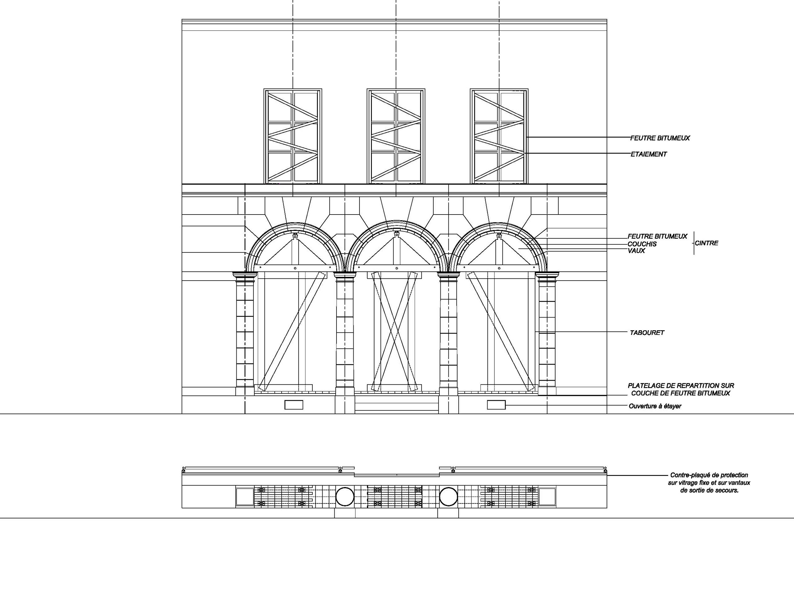 Consolidation des colonnes et arcades de part et d'autre du porche central.
