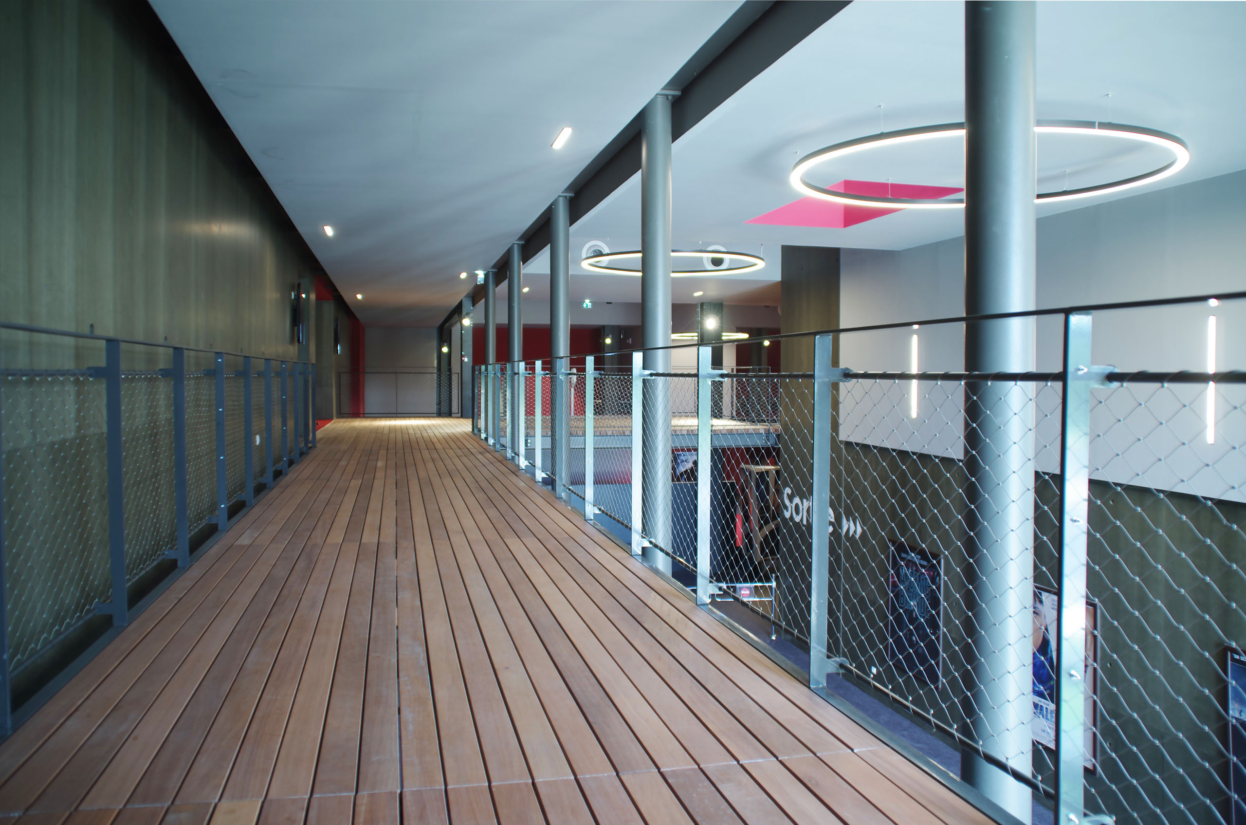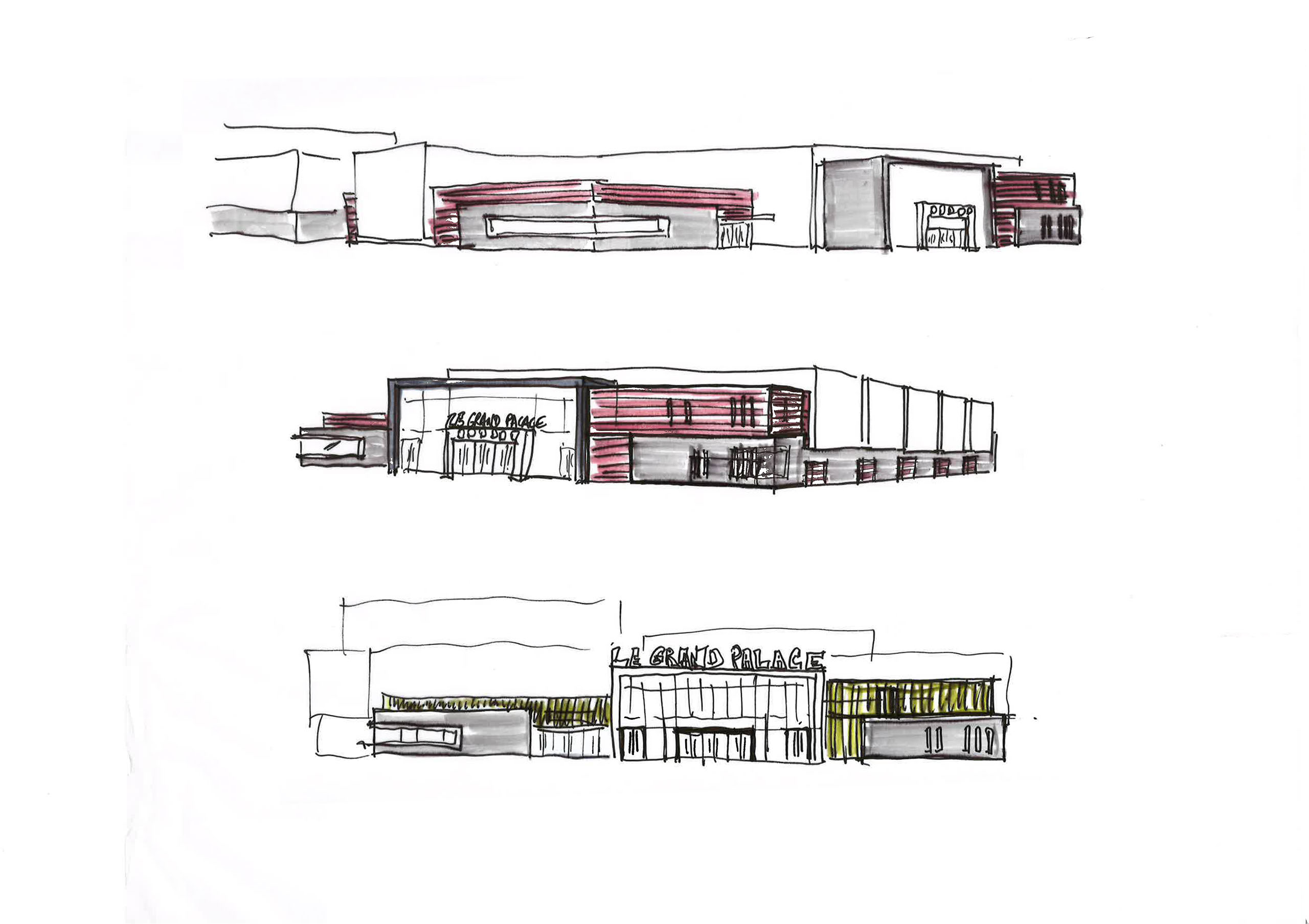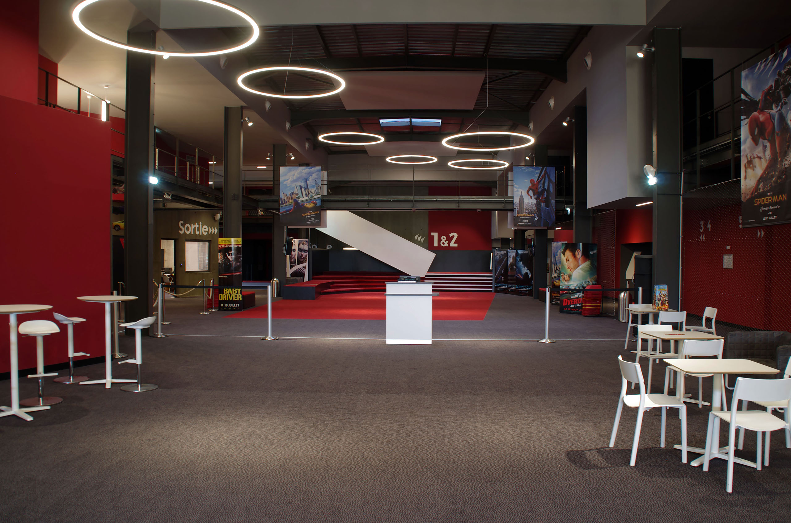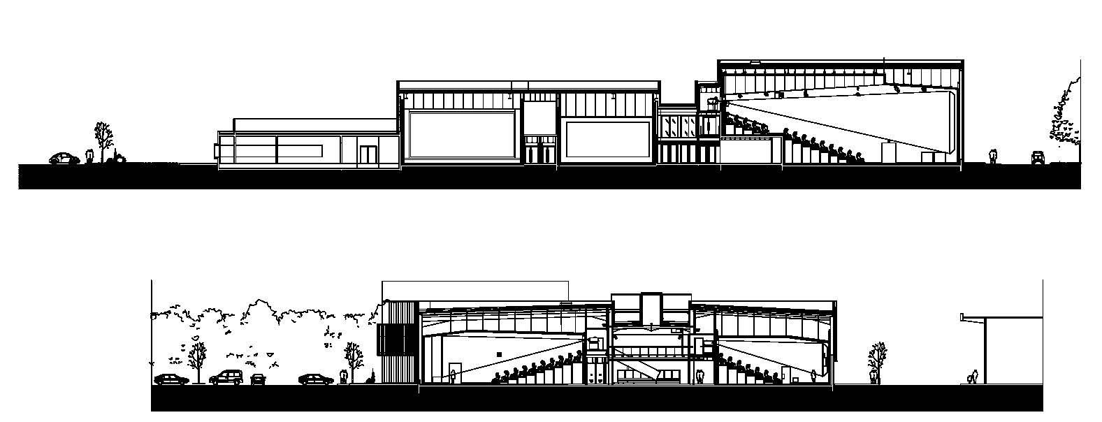 9 salles à Saumur. Le projet est constitué d’un hall traversant ouest-est accessible depuis un espace piéton en bordure d’un centre commercial.